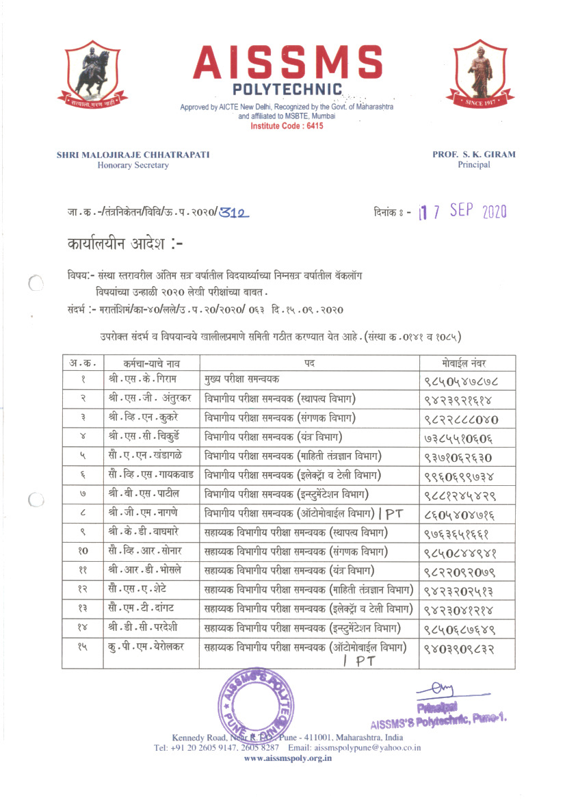 Committee for Backlog Online Examination Summer 2020