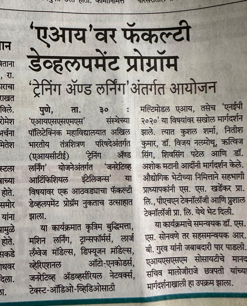 Polytechnic news in Sakal 31st Aug 25